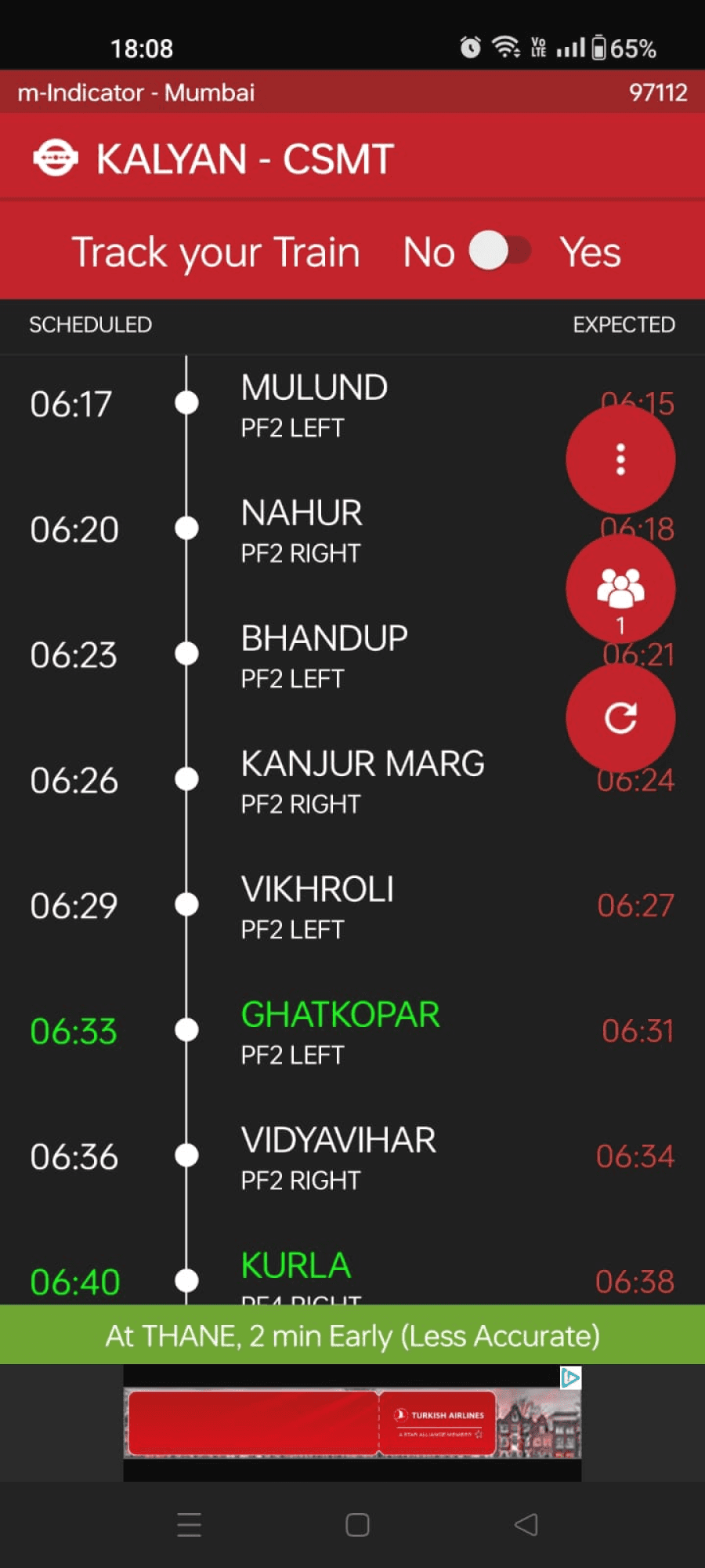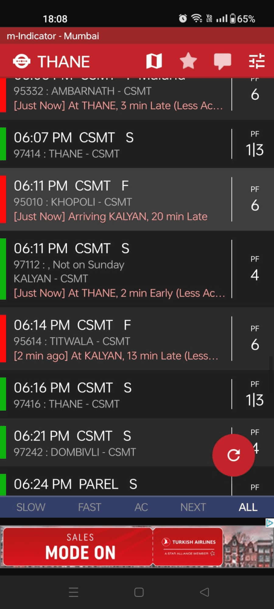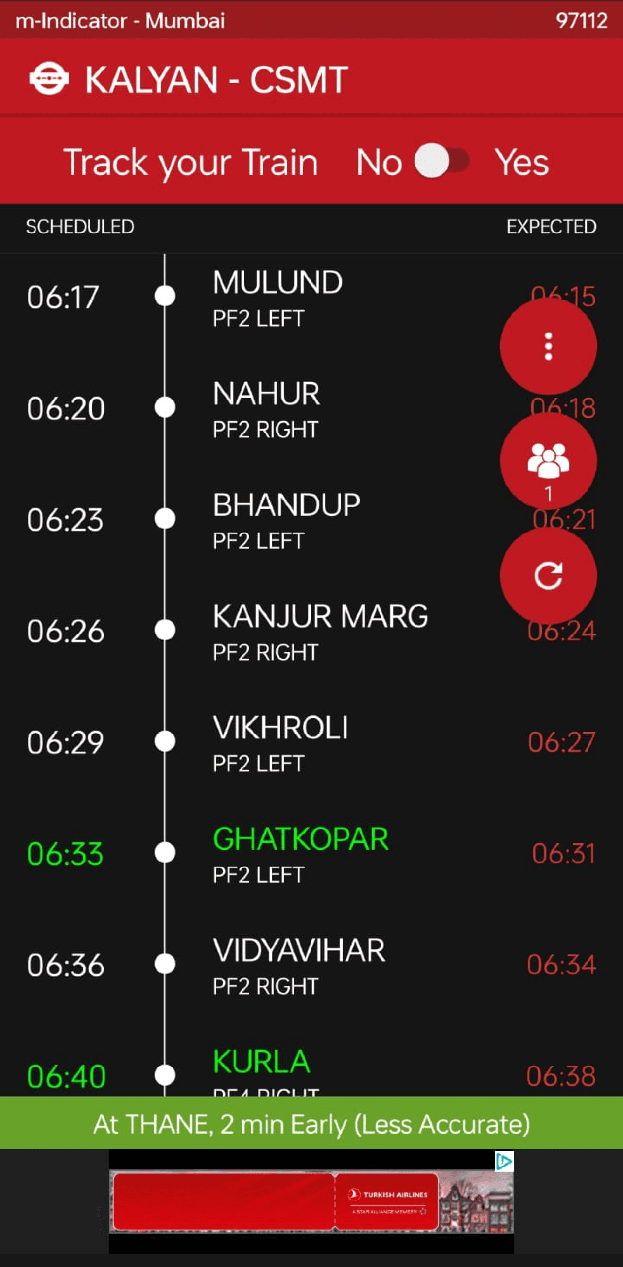 Red used for denoting “fast trains” is not placed close to the fast trains symbol. This causes a lack of association between the two factors and leads the user to think that the train might be cancelled.